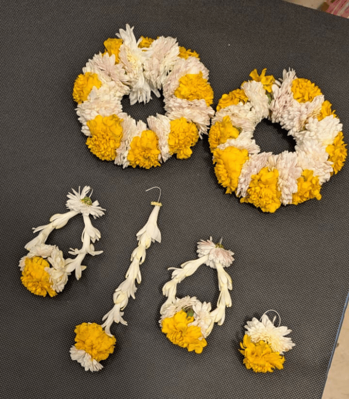 Handcrafted Marigold & Tuberose Floral Jewelry Set