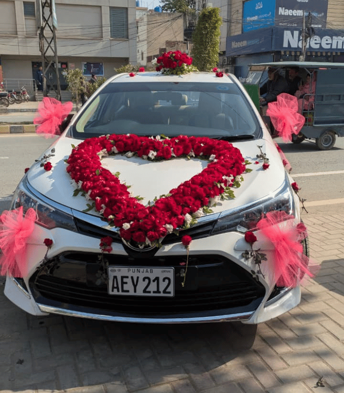 Heart Shap Red & White Floral Car Decor for Weddings