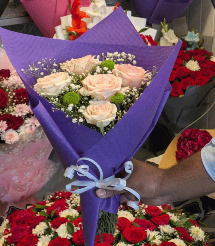 Medium size With English flowers 🌹 & babybreath bouquet