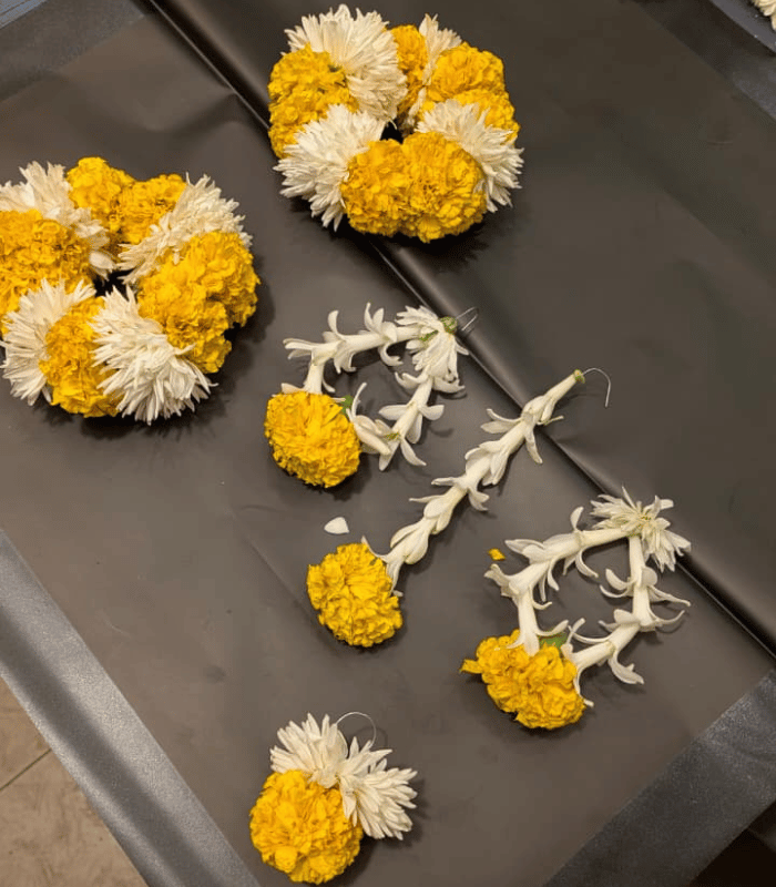 Yellow & White Marigold Flowers Jewelry Set for Mehndi