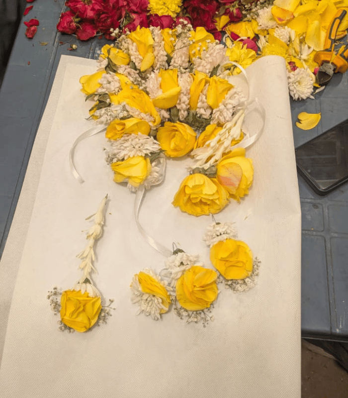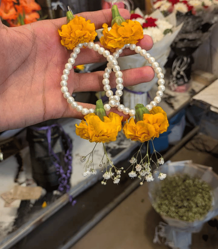 Handcrafted Marigold & Tuberose Floral Jewelry Set